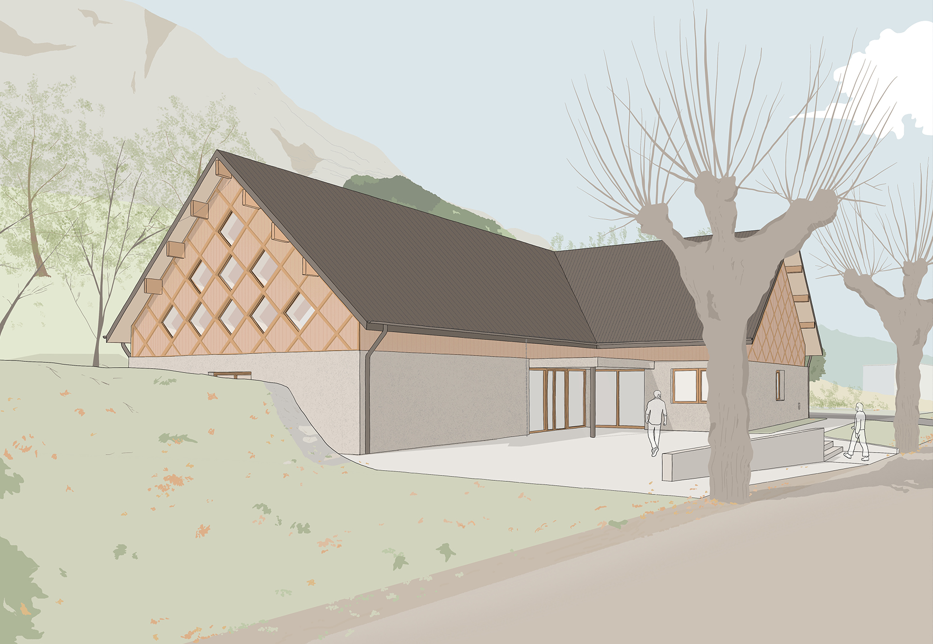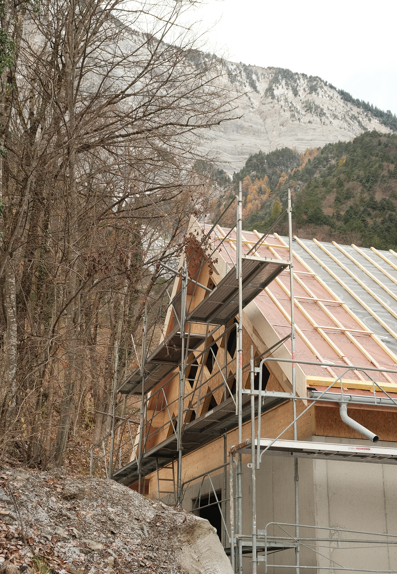 Sur les hauteurs de Bourg-d’Oisans, la nouvelle salle funéraire et communale est conçue sur un socle minérale et une élévation en ossature bois afin de s’intégrer dans un site en pente et de s’ouvrir sur le grand paysage, le massif des écrins. En conception bioclimatique, son implantation répond